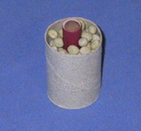 Now it is necessary to trim the tube. Height grenade depends on the kind of firecrackers they use. I think the best are red megy. They have a decent noise effect and also sufficient strength for spreading the filling grenade. If you use Megu and cut the grenade body (sharp scalpel to roll nepromáčkla) about 6 cm above the bottom of the tube. Now glue the inside of the grenade-second glue firecracker. Make sure to be approximately at the center of the grenade is cone!