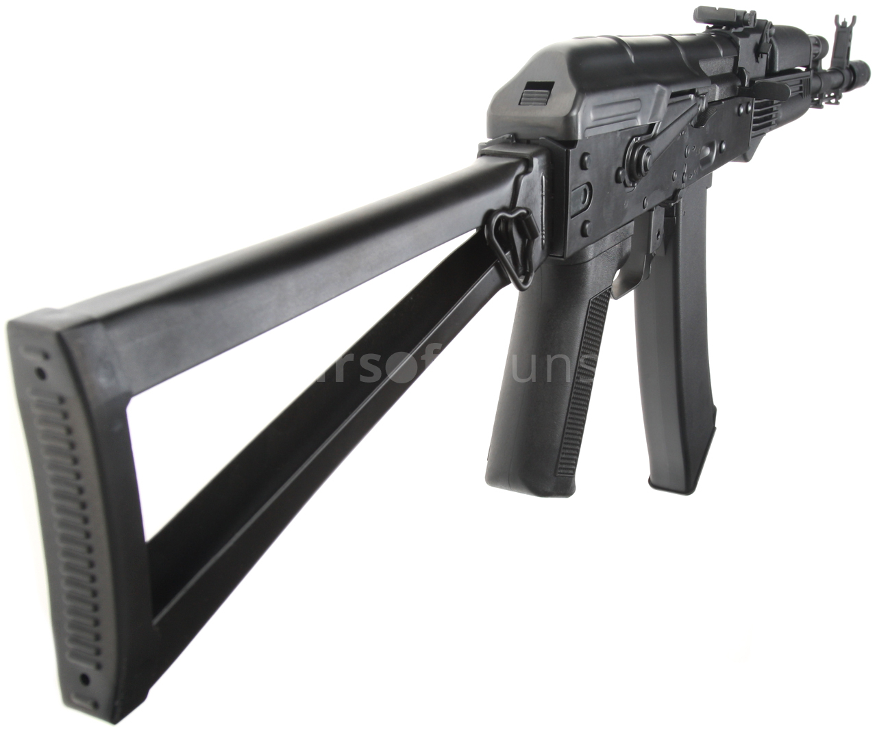 Electric airsoft gun. Replica of the AK-74S [CM.053] Cyma Platinum Edition model in an exclusive all-steel design.
