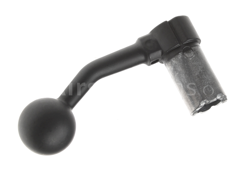 Cocking handle for spring powered airsoft gun L96. Metal spare part from Well suited for the types of rifles labeled: MB01, MB04, MB05, MB08 and MB14. Can not be used to type AWS L96 having a large magazine in place under the bolt!