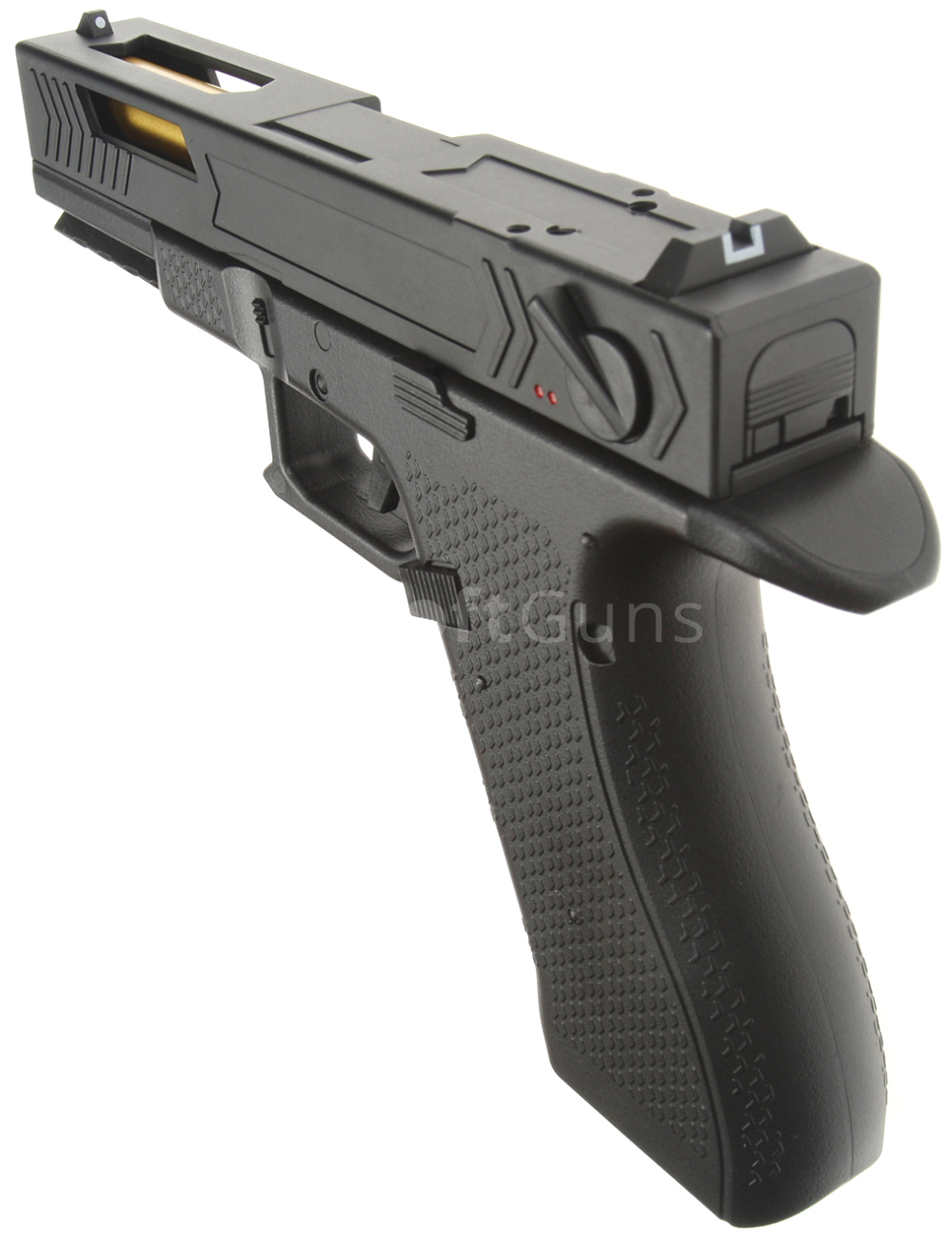 Electric AEP pistols are easy to use and maintain. Shooting with them is easy, accurate, and automatic. There are two firing modes - single shot or Burst. The battery is inserted under the pistol slide, which is fixed and does not move during firing. The Hop-Up system is also adjusted under the slide.