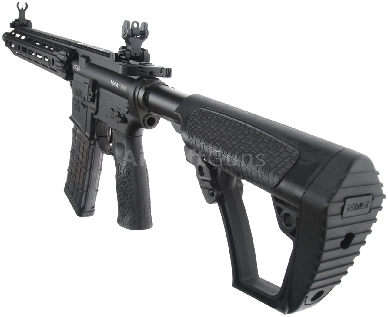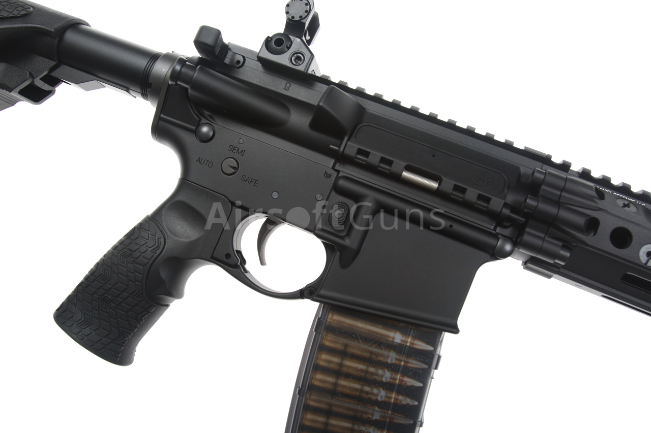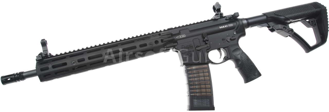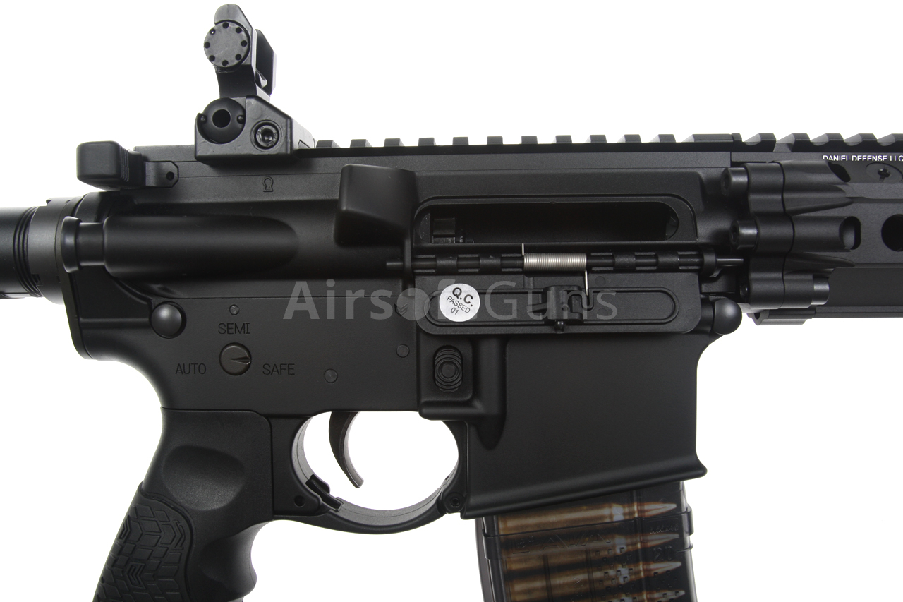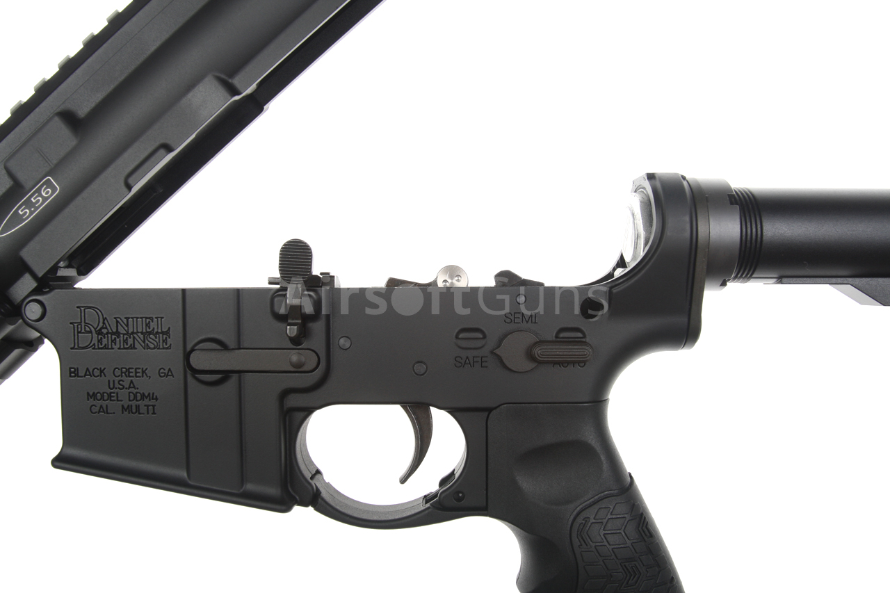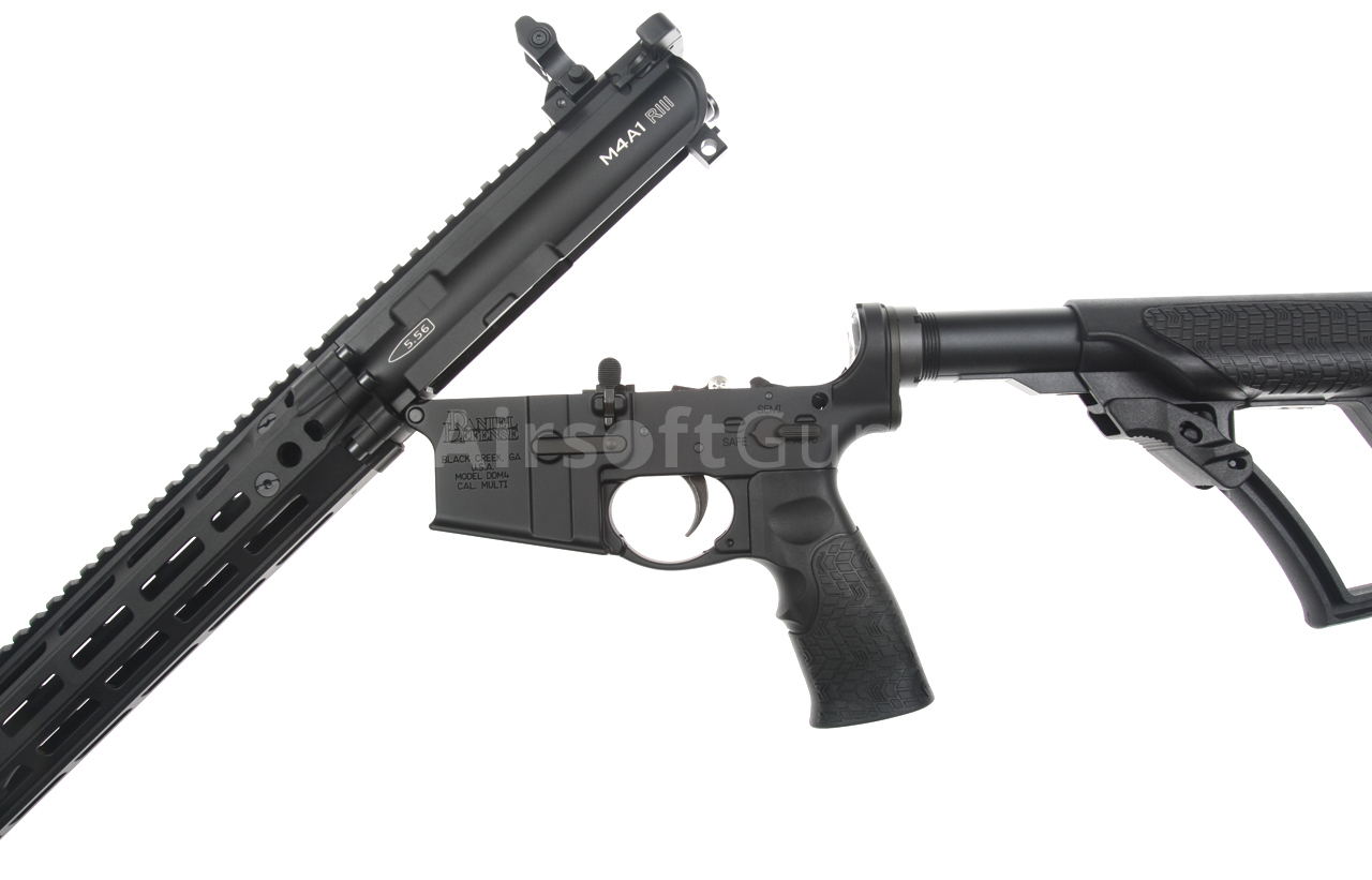 The gun is equipped with a telescopic Daniel Defense stock, which offers 4 length adjustment positions. The 14.5-inch metal outer barrel is fitted with a classic M4A1 compensator, which is screwed onto a 14 mm counter-clockwise thread.