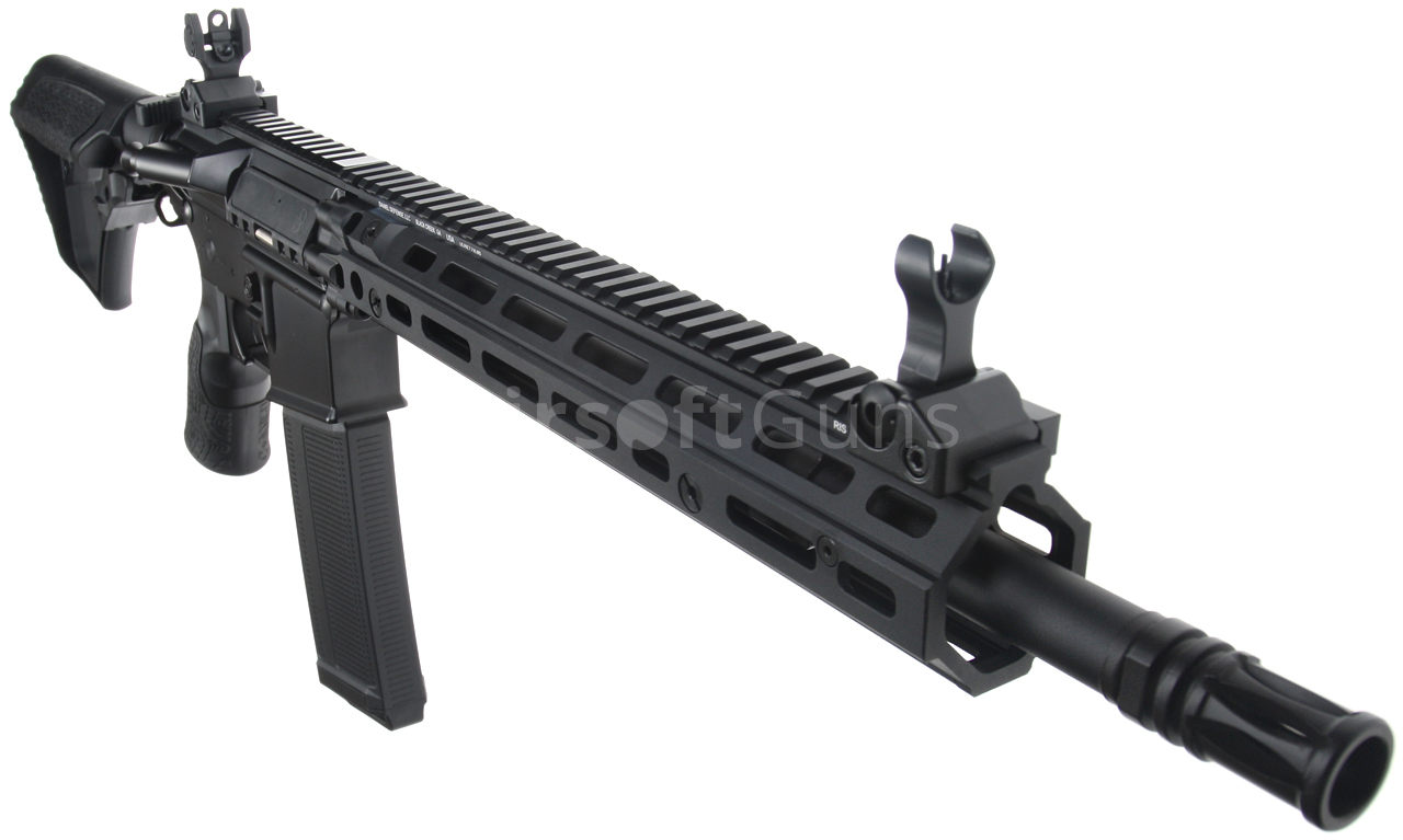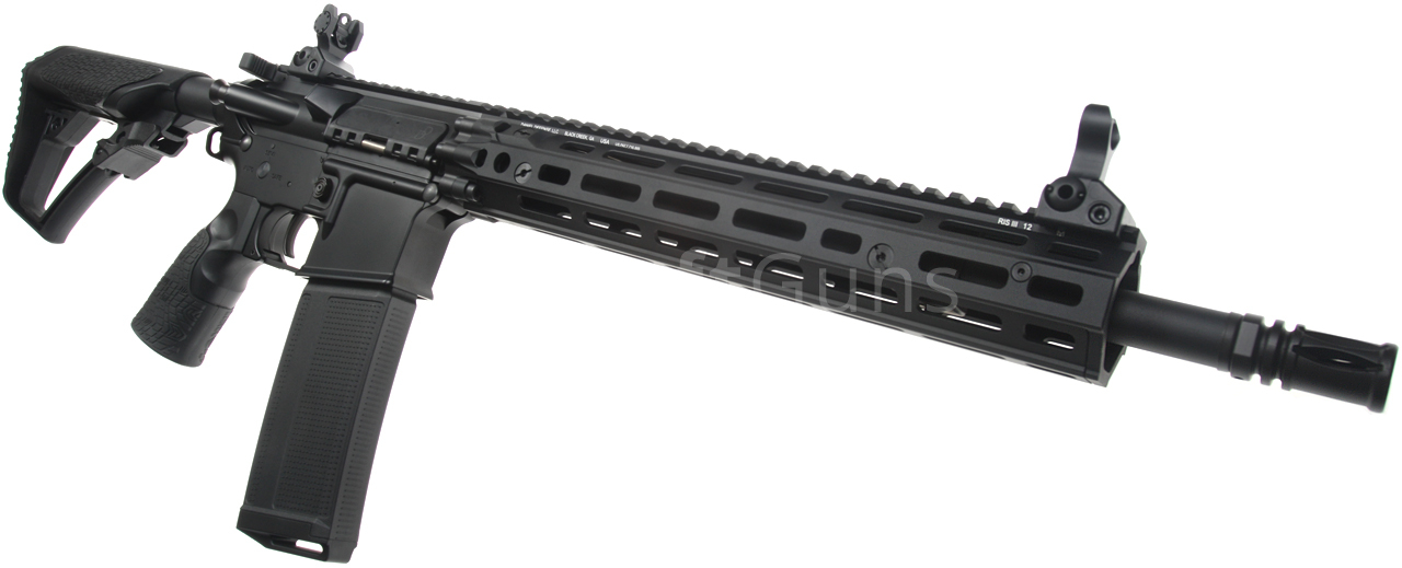 The gun is equipped with a modern CNC metal RIII M-Lok foregrip (12.5 inches), which is much lighter and narrower than a standard RIS and therefore guarantees a great grip. The modern M-Lok system allows the mounting of tactical accessories according to each user's preferences.