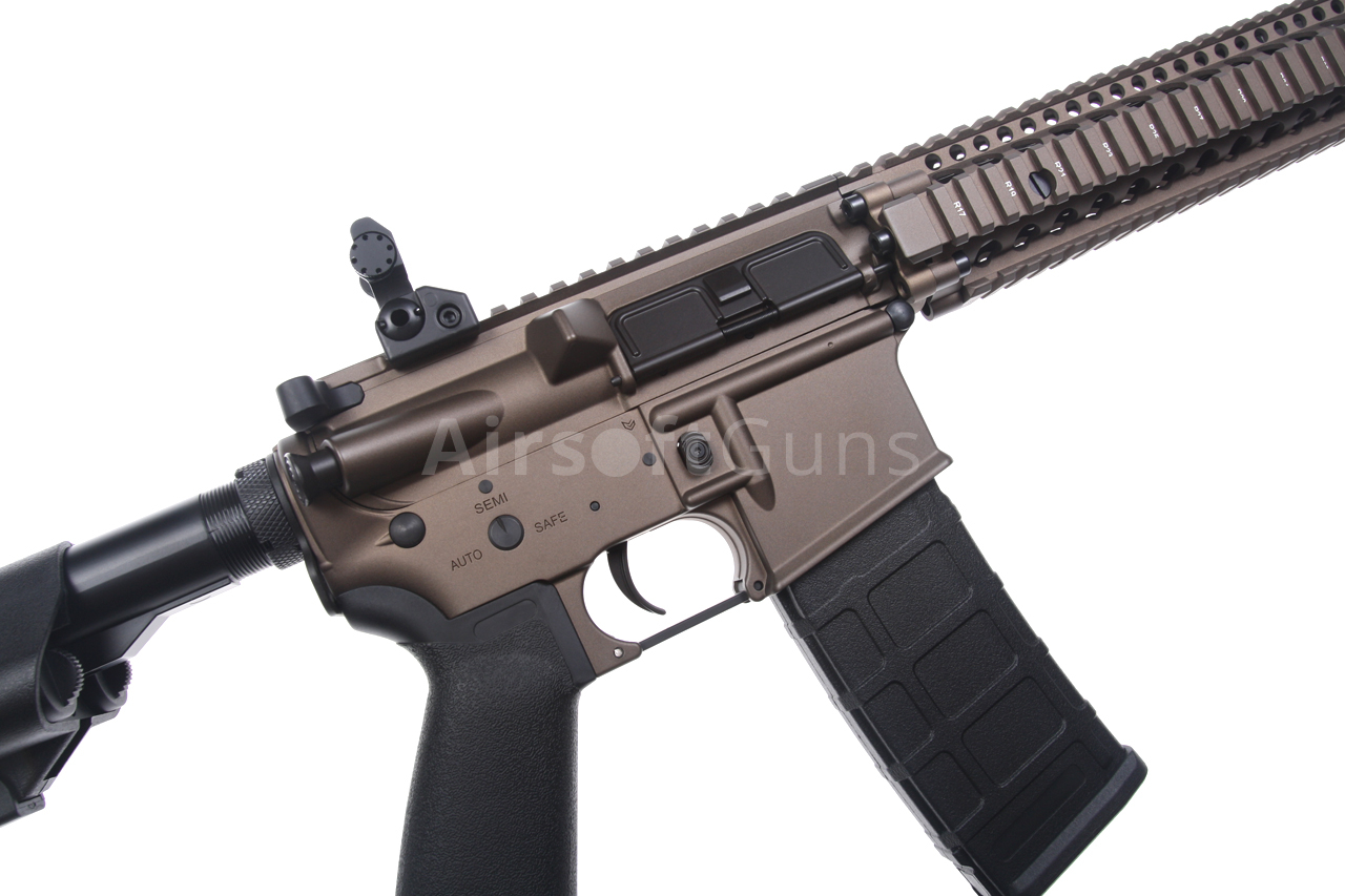 Electric airsoft gun. Replica of the EMG Daniel Defense M4A1 RII [CM.105 DDL DE] Cyma Platinum Edition in a full-metal, exclusive design. Variant in the modern and popular FDE (Flat Dark Earth) color.