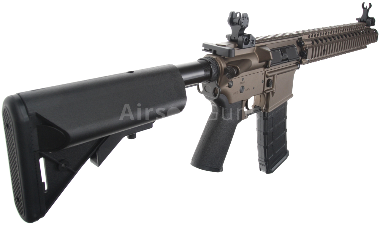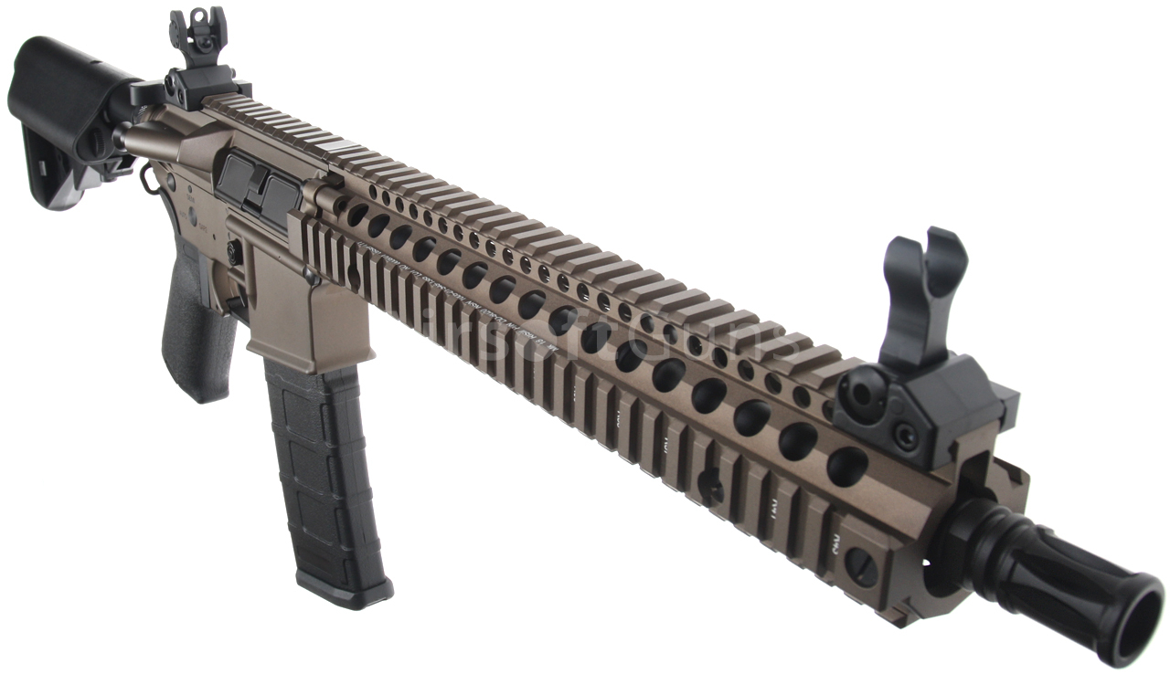 The gun is equipped with a 12-inch FDE-colored Daniel Defense MK18 RII CNC metal RIS foregrip, which allows for the mounting of tactical accessories according to each user's preferences.