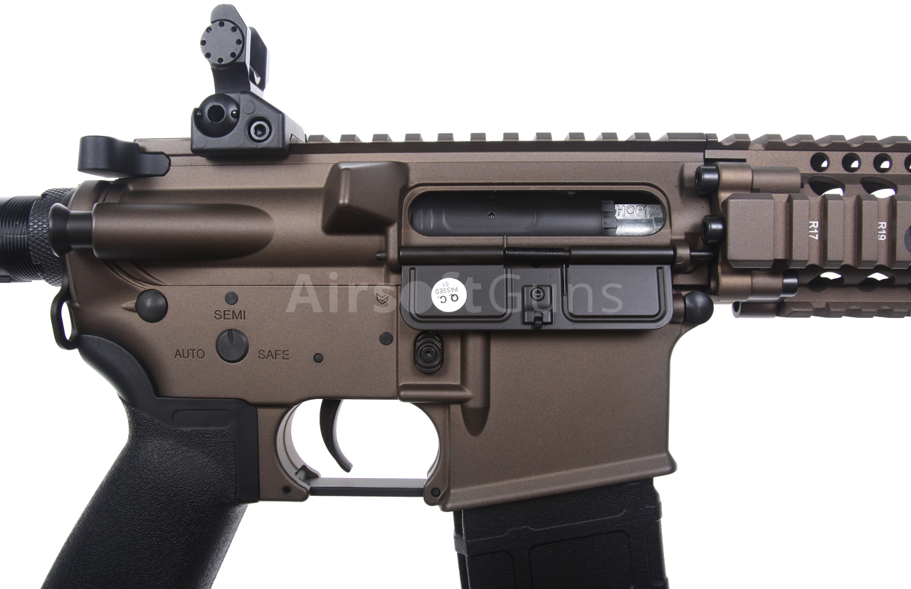 This version of the classic AR15 from the new and highest edition of Cyma Platinum offers a beautiful FDE-colored body with original Daniel Defense engraving (licensed by EMG) and a unique serial number, as well as fully upgraded internal parts that are not offered by standard guns from other brands. Another interesting feature is the QSC (Quick Spring Change) design, which allows for quick spring replacement without having to disassemble the body or gearbox. The manufacturer Cyma has once again proven that it is increasingly focusing on the premium airsoft replica segment while maintaining excellent prices for customers.