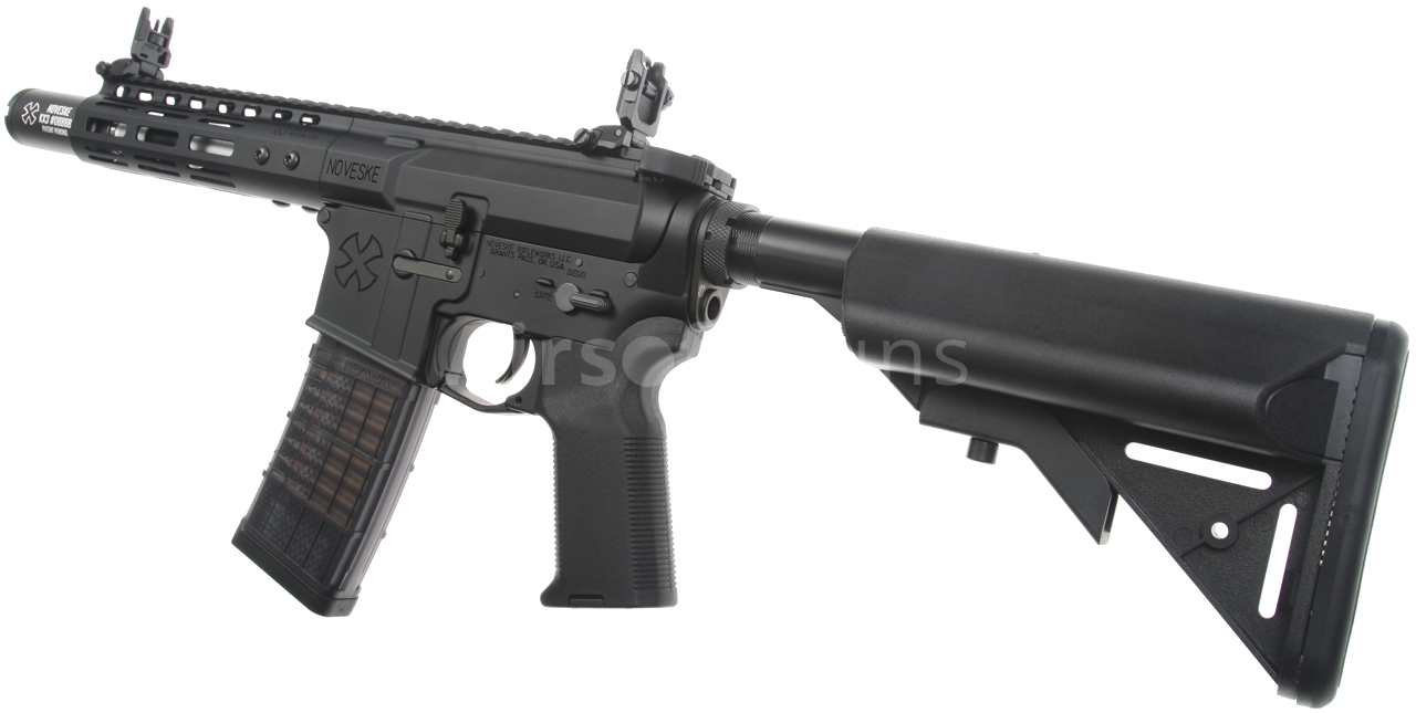Electric airsoft gun. Replica of the EMG Noveske N4 Gen3 Diplomat 7 Inch NSR-7.5 [NOV.NSR-7 BK] Cyma Platinum Edition in full-metal and top-quality design in black.