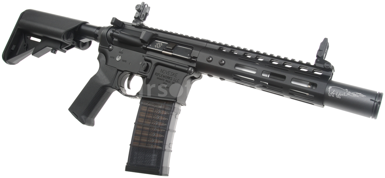 The gun is equipped with a modern CNC metal Noveske NSR-7.5 M-Lok foregrip (7.5 inches long), which is much lighter and narrower than a standard RIS and therefore guarantees a great grip. The modern M-Lok system allows the mounting of tactical accessories according to each user's preferences.