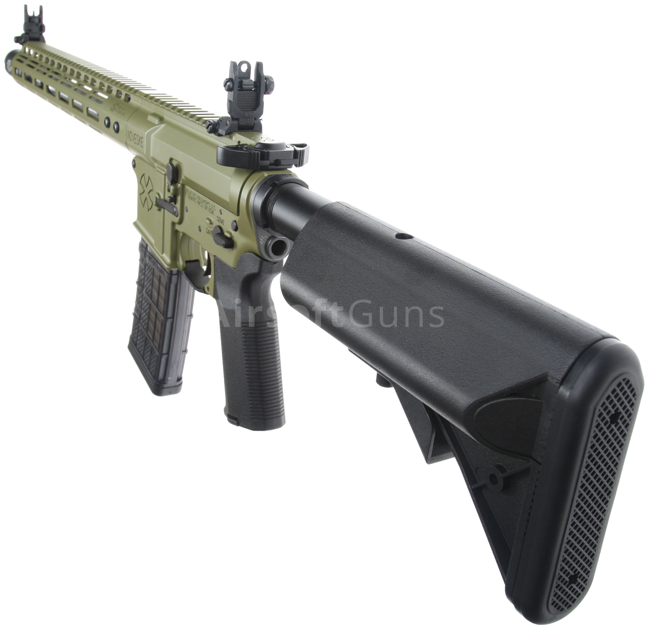 Automatic gas airsoft guns. Replica of the EMG Noveske N4 Gen3 Infidel 12.5 Inch NSR-13.5 [NOV.1203 OD] Cyma CGS with blowback system (GBBR) in a full-metal, exclusive design in Bazooka Green.
