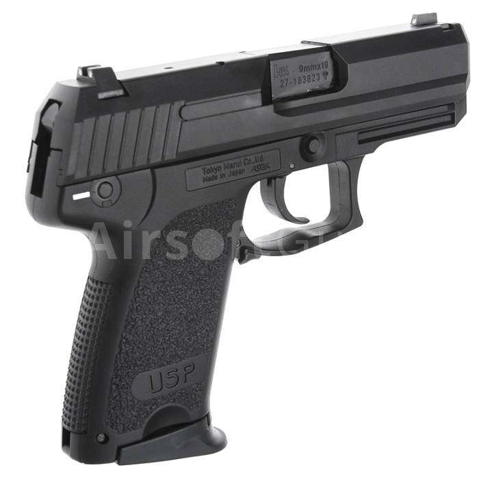 Gas airsoft pistol with Blow Back system. Replica of model H&K USP Compact from Tokyo Marui.