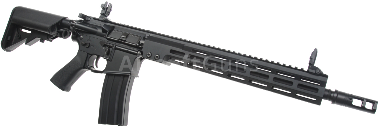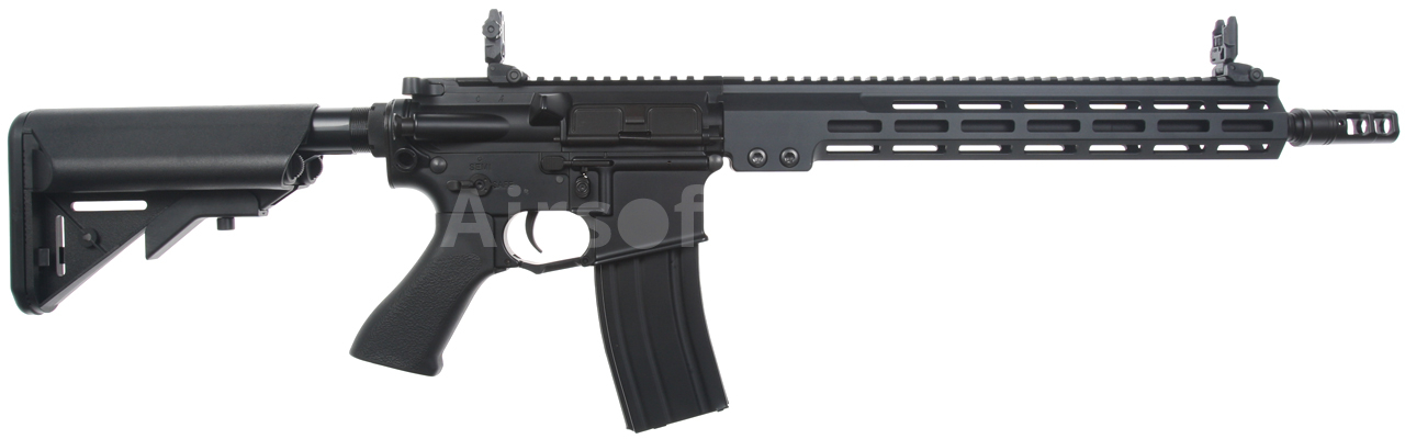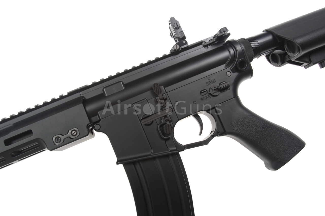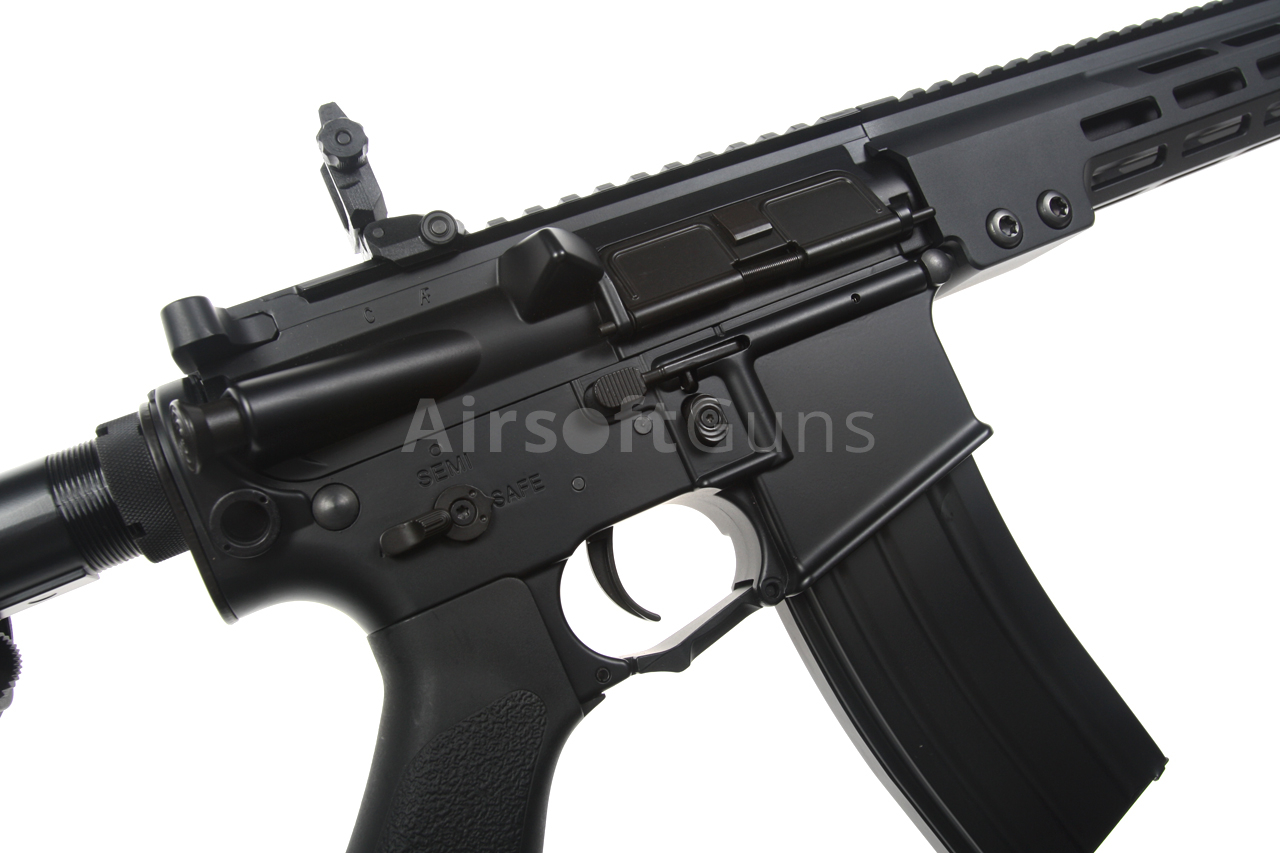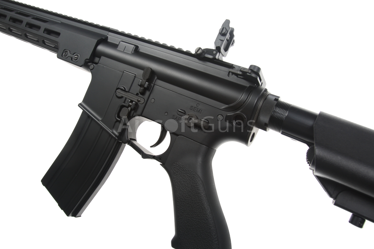 The gun is equipped with a modern CNC metal MK16 M-LOK foregrip (13.5 inches), which is much lighter and narrower than a standard RIS and therefore guarantees a great grip. The modern M-Lok system allows the mounting of tactical accessories according to each user's preferences.