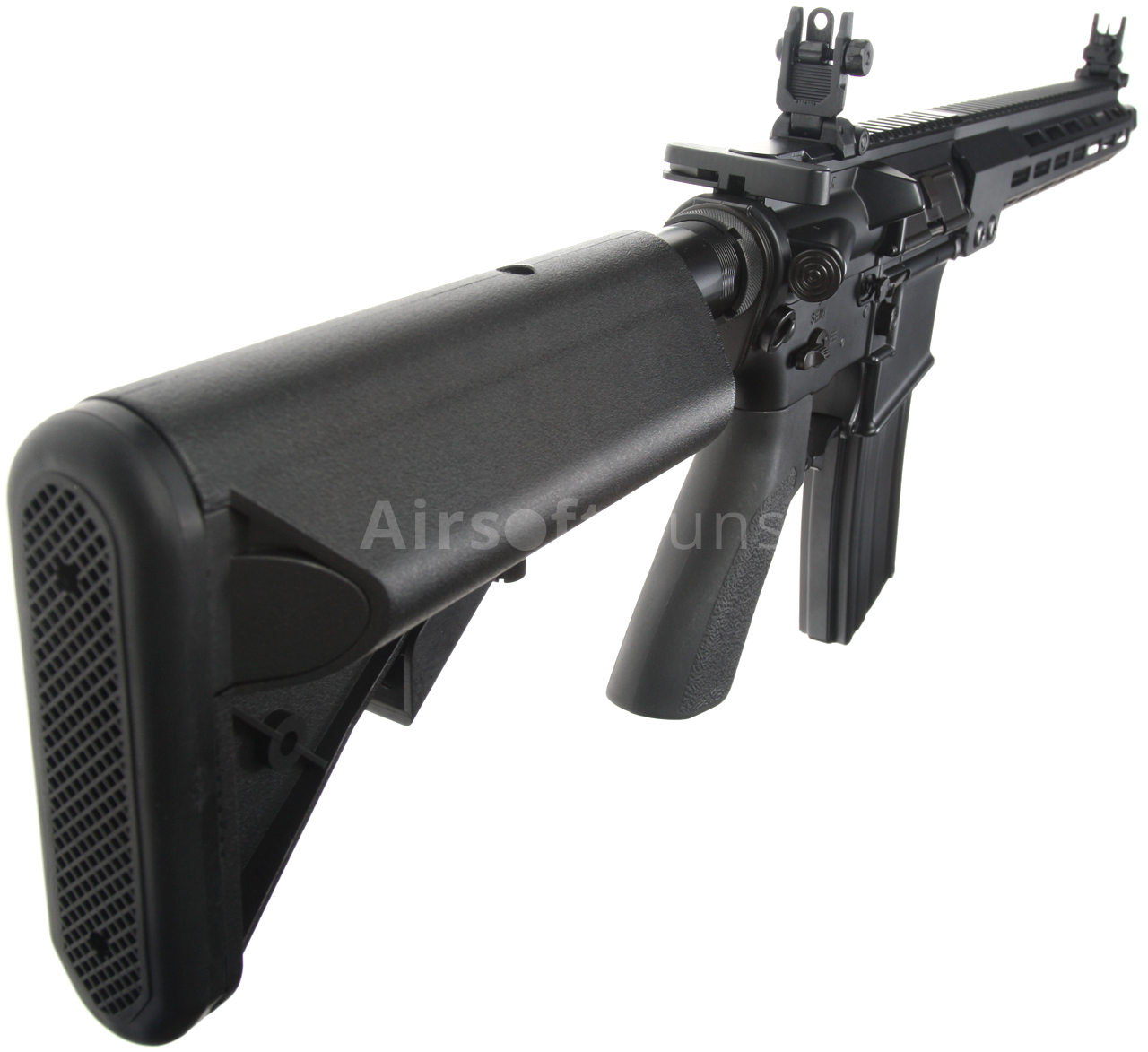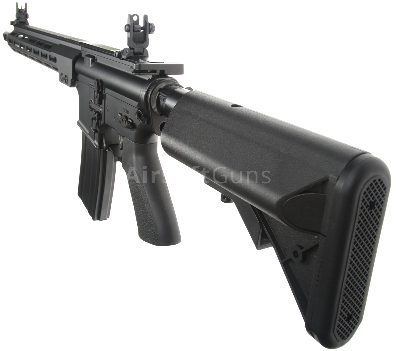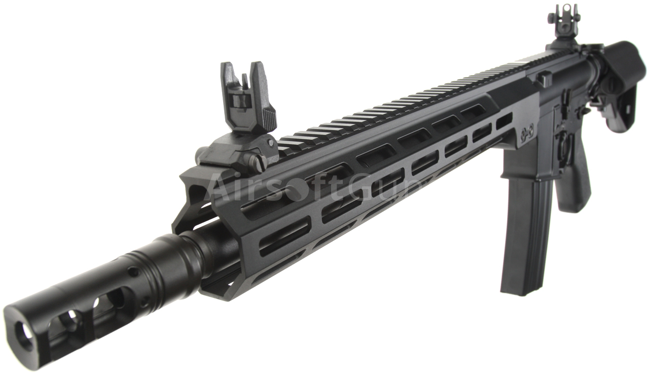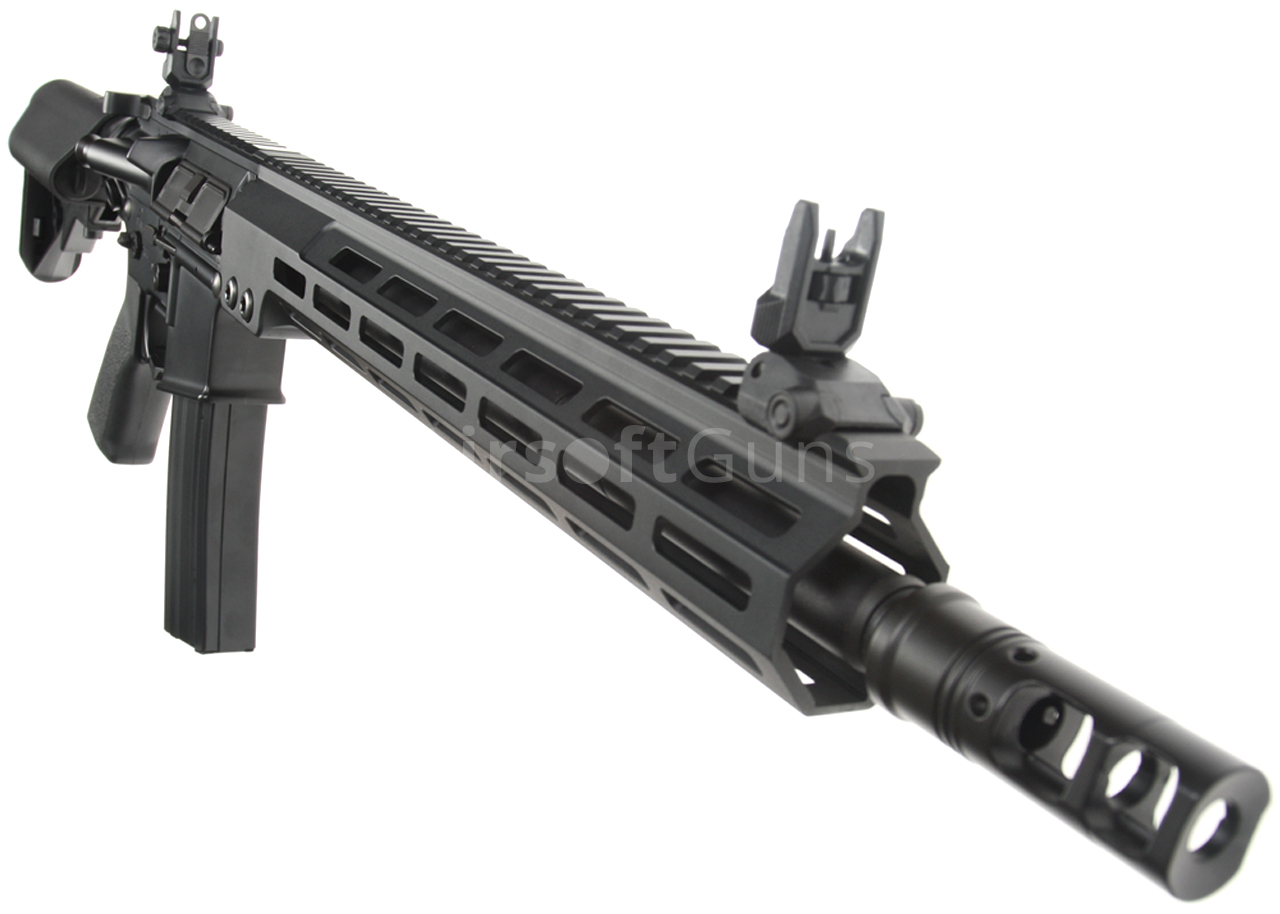 The gun is equipped with a modern CNC metal MK16 M-LOK foregrip (13.5 inches), which is much lighter and narrower than a standard RIS and therefore guarantees a great grip. The modern M-Lok system allows the mounting of tactical accessories according to each user's preferences.