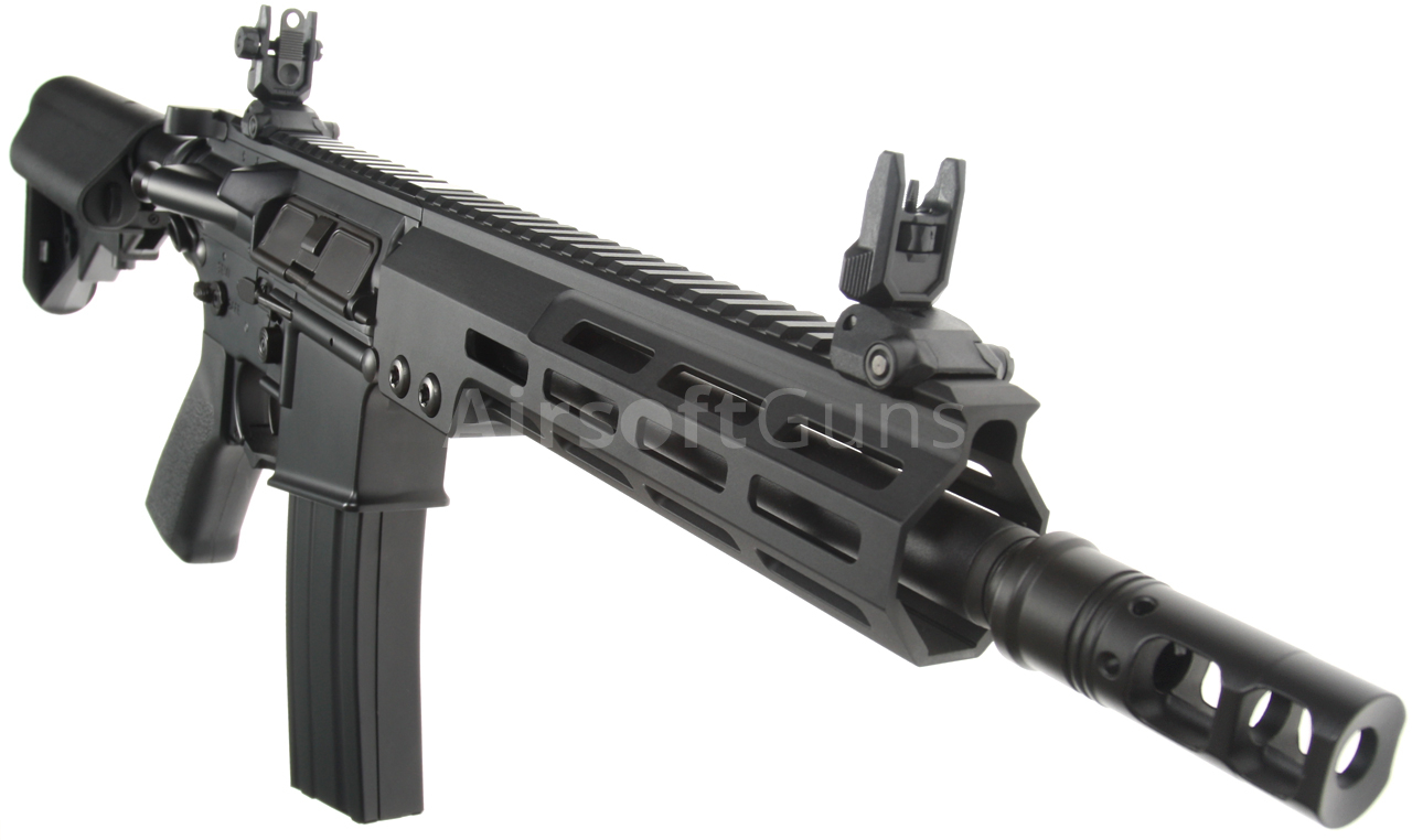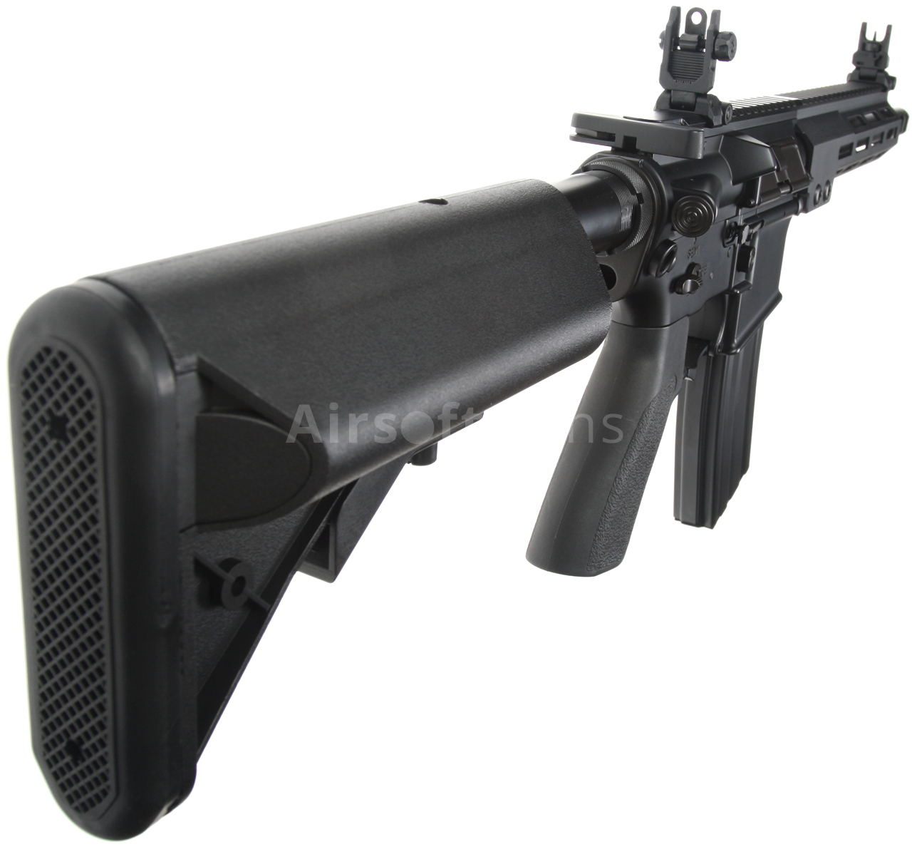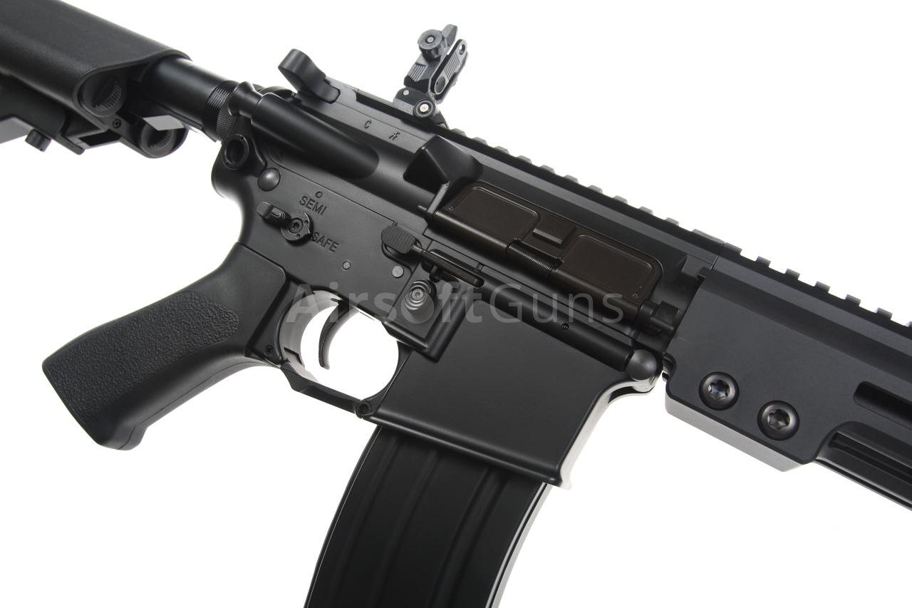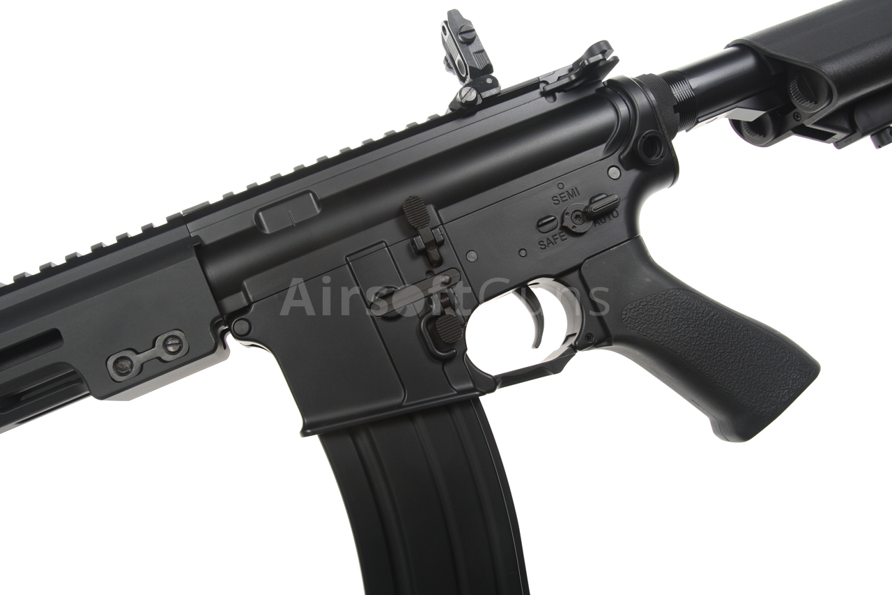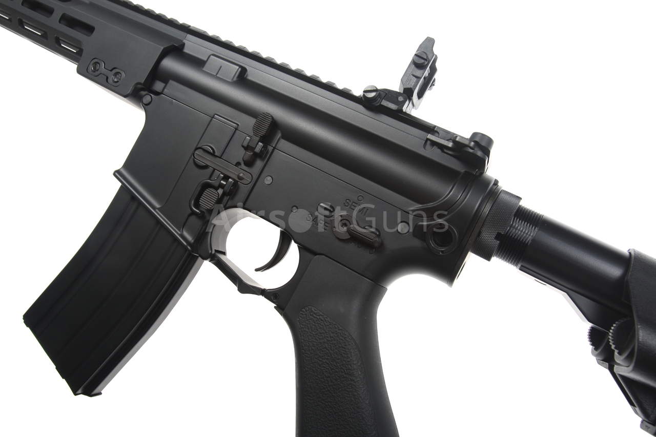 The gun is equipped with a modern CNC metal MK16 M-LOK foregrip (8.5 inches), which is much lighter and narrower than a standard RIS and therefore guarantees a great grip. The modern M-Lok system allows the mounting of tactical accessories according to each user's preferences.