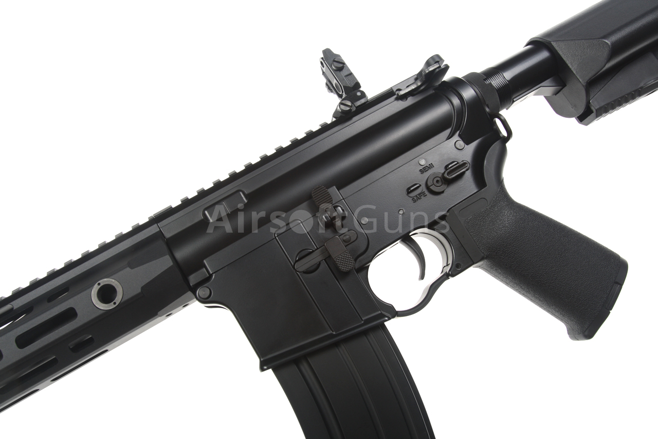 The gun is equipped with a modern CNC metal URX4 M-LOK foregrip (8.5 inches), which is much lighter and narrower than a standard RIS and therefore guarantees a great grip. The modern M-Lok system allows the mounting of tactical accessories according to each user's preferences.