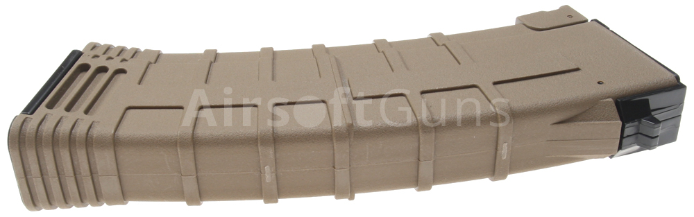 Wind Up magazine (Hicap) for AK74 and AK105 AEG guns from Cyma. The sand-colored TAN magazine is made of lightweight, hard polymer in the TAPCO style.By purchasing this product you earned 12 Reward Points.