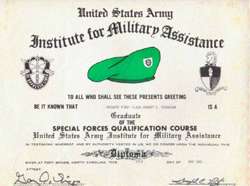 After completion of these specialized courses followed stmelovací exercise 'Robin Sage'. Here they are tucked into real A-team and must prove that he can work in combat conditions. At the end of this exercise is to dream a Green Beret Special Forces badge with the inscription DE OPPRESSO pounds (liberation from oppression) and "fleches" units. A flush fabric substrate below the badge, and its color indicates to which unit you belong. 10th SFGA has, for example green.