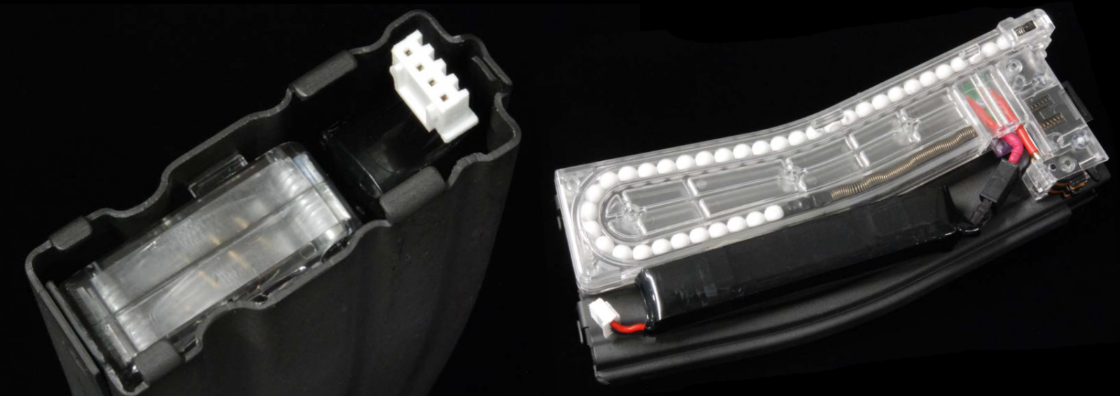 In addition, the battery has now been moved from the conventional stock tube over to the magazine that is equipped with the Recoil Shock System.