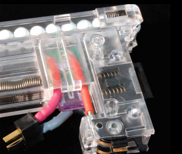 For the Recoil Model, both the Micro Switch Device and the B-Connector are necessary components, therefore two power supply cables are attached to the side of the Gear Box.