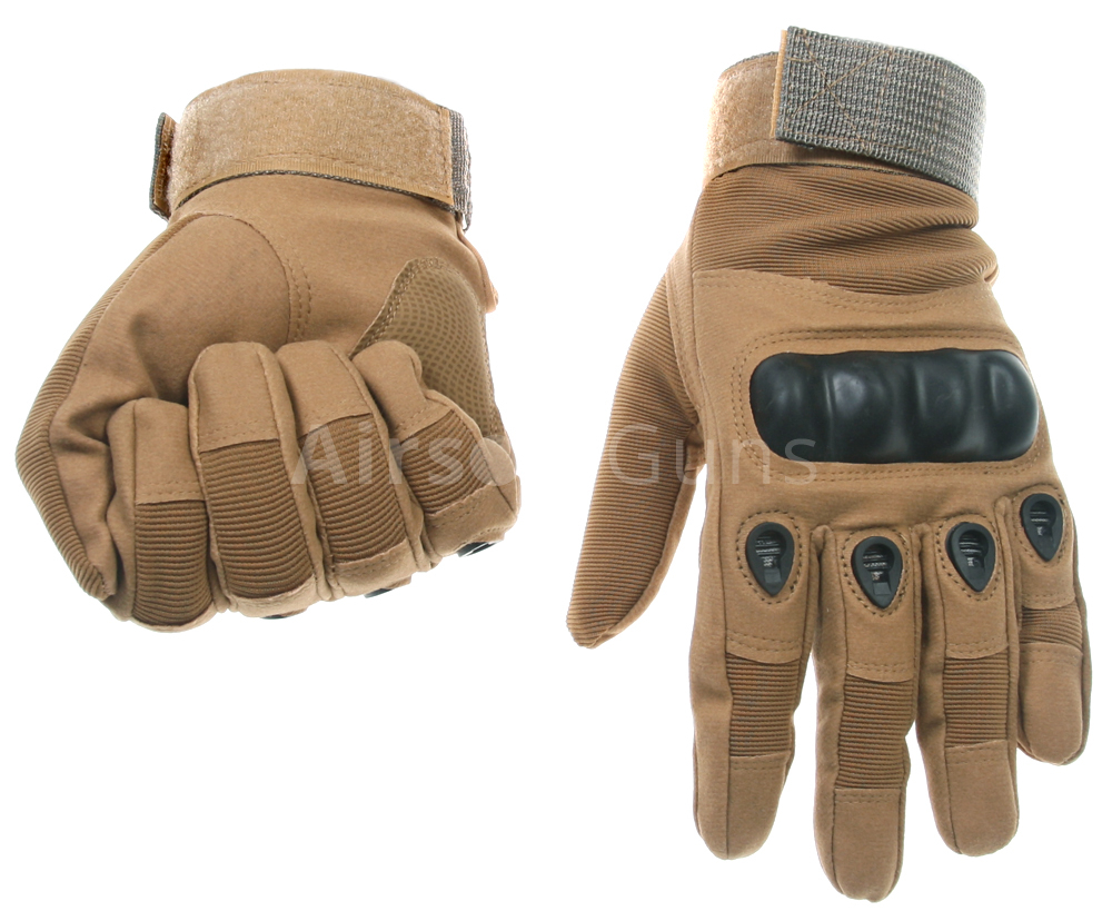 Tactical sand-colored gloves in the style of Oakley FPG. The soft padding is across the underside of the palm and fingers. On the upper part includes a breathable material and microventilation holes keep optimum temperature of hand. Hard and flexible reinforcements protect your knuckles.